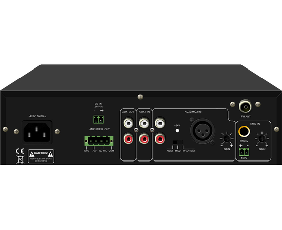 Трансляционный усилитель для организации системы фоновой музыки и речевого оповещения.