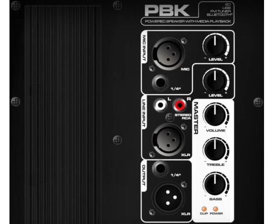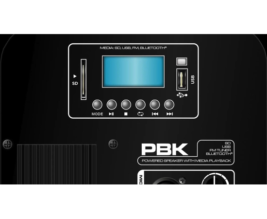 Peavey PBK 12PB - активный вариант колонки PBK 12. Компактная многофункциональная бюджетная активная акустическая система в пластиковом корпусе. Система оснащена встроенным двухполосным эквалайзером (Bass & Treble), FM-тюнером, Bluetooth-каналом и USB-разъёмом для воспроизведения MP3-файлов с флеш-накопителя или мобильного устройства. Оборудована 12-дюймовым низкочастотным и 1,4-дюймовым высокочастотным динамиком.