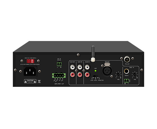 Трансляционный усилитель для организации системы фоновой музыки и речевого оповещения.