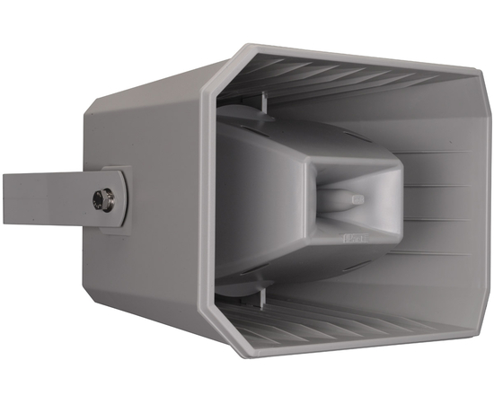 Корпус громкоговорителя выполнен из ударопрочного пластика, в комплект поставки входит металлический кронштейн "скоба", позволяющий регулировать направленность громкоговорителя при монтаже.