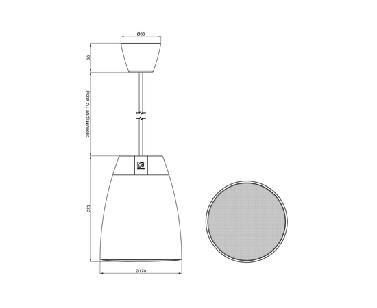 Крепление колонки осуществляется с помощью соединительного кабеля с двумя встроенными стальными сердечниками для подвешивания с дополнительной защитой от падения. Фиксация осуществляется с помощью двух карабинов на одном конце и двойной фиксации Gripple™ на другом конце. Входящий в комплект кабель длиной 3,5 метра обеспечивает возможность установки на потолках различной высоты. В качестве опции доступны более длинные подвесные тросы длиной 5 или 7 метров.