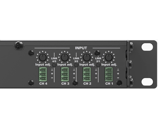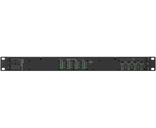 Технология усилителя класса D обеспечивает бескомпромиссное звучание самым эффективным способом. Входные соединения выполняются с помощью 3-контактных разъемов клеммной колодки, а выходные соединения выполняются с помощью 4-контактного разъема клеммной колодки.