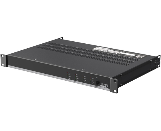 Усилитель Audac CEP408 представляет собой 19-дюймовое устройство. Чтобы обеспечить максимальное удобство установки и обслуживания, CEP имеет пассивное охлаждение.
