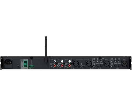 - Регулировка тембра по 3 полосам для микрофонных входов, имеется режим приоритета микрофонного сигнала (talk over) для трансляции срочных сообщений