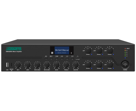DSPPA DMA6650U - 6-зонный 650-ваттный трансляционный микширующий усилитель со встроенным источником звука для организации системы оповещения или трансляции фоновой музыки