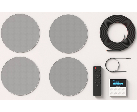 - Звуковой комплект «все в одном», включающий потолочные колонки и настенный встраиваемый усилитель