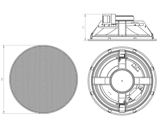 Размеры колонок: Ø186 мм x глубина 70 мм, Размер монтажного отверстия 170 мм