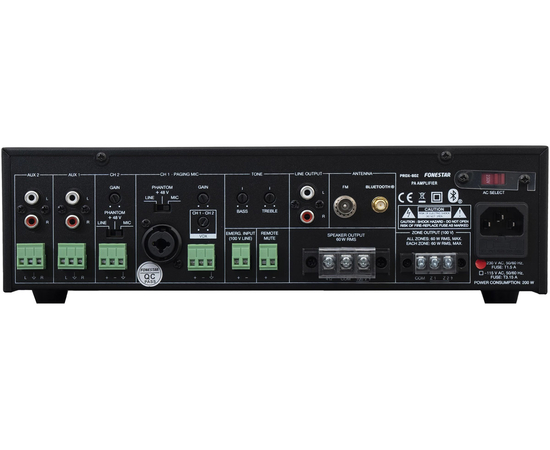 Fonestar PROX-60Z - 2-зонный 60-ваттный микширующий усилитель со 100-вольтовым приоритетным входом