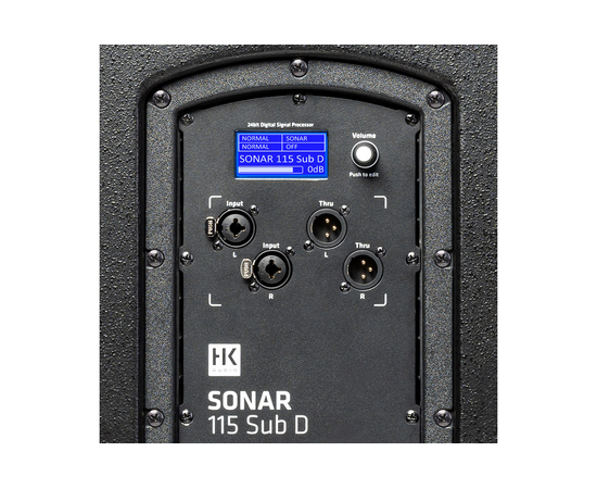 Сабвуфер SONAR 115 Sub D управляется 24-битным DSP с ЖК-экраном с подсветкой, с помощью которого можно удобно регулировать частоту разделения каналов, полярность и, при необходимости, задержку. Одной из особенно примечательных особенностей является простая в использовании и высокоэффективная кардиоидная функция, которая до сих пор была доступна только в гораздо более дорогих сабвуферах. Благодаря двум предварительно настроенным пресетам CARDIOID FRONT и CARDIOID REAR проблемное низкочастотное излучение сзади можно эффективно минимизировать.
