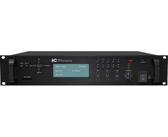 Выходная мощность усилителя MPT 120 составляет 120 Вт. Главная особенность этого усилителя - интегрирация недельного таймера и MP3-плеера, поэтому конечный пользователь может удобно программировать время воспроизведения тех или иных файлов MP3, будь то голосовое рекламное сообщение, объявление, музыка, школьный звонок и т.п..