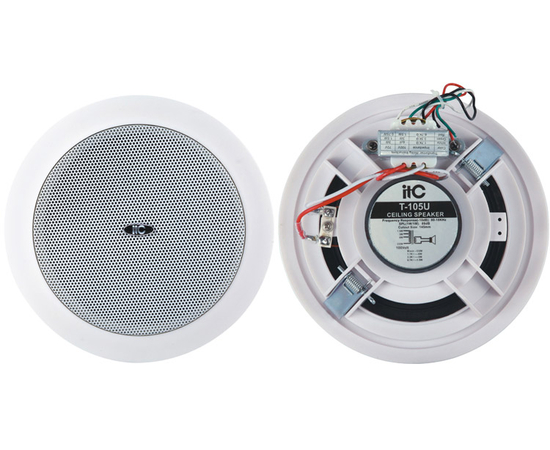 Недорогой бюджетный встраиваемый потолочный громкоговоритель ITC T-105U предназначен для трансляции фоновой музыки и голосовых сообщений в системах оповещения.
