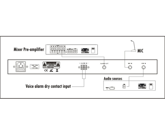 - 2 режима аварийной сигнализации: немедленное прекращение подачи сигнала тревоги при отмене триггера короткого замыкания; после отмены триггера короткого замыкания сигнализации звуковой сигнал будет воспроизводиться циклически (вам необходимо вручную нажать кнопку остановки, чтобы отменить сигнал тревоги)