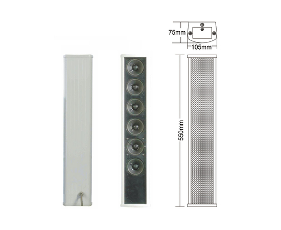 ITC Audio T-703A - это всепогодный громкоговоритель колонного типа со встроенным трансформатором 70 В / 100 В. Трансформатор снижает потери в линии на большем расстоянии и позволяет легко подключать несколько громкоговорителей параллельно.
