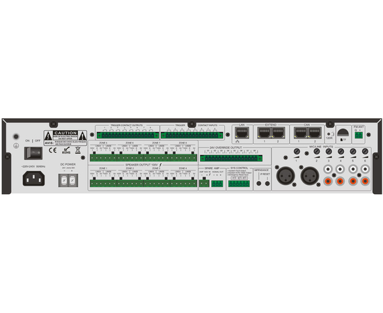 - Вход для внешнего резервного усилителя мощности, когда встроенный усилитель выходит из строя, система может автоматически переключаться на резервный усилитель.