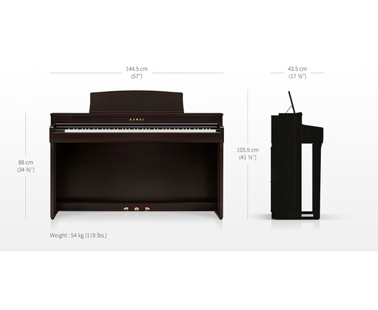 Цифровое пианино CN39 воспроизводит волшебное звучание нашего флагманского концертного рояля Shigeru Kawai SK-EX. Получившие широкое признание и известные как «великолепные японские рояли» инструменты Shigeru Kawai украшают сцены концертных залов и музыкальных заведений во всем мире и высоко ценятся за исключительную чистоту звука. Кроме того, Kawai CN39 включает также характерный тембр знаменитого концертного рояля Kawai EX, который профессиональные пианисты часто выбирали на международных фортепианных конкурсах имени Шопена, Чайковского и Рубинштейна.