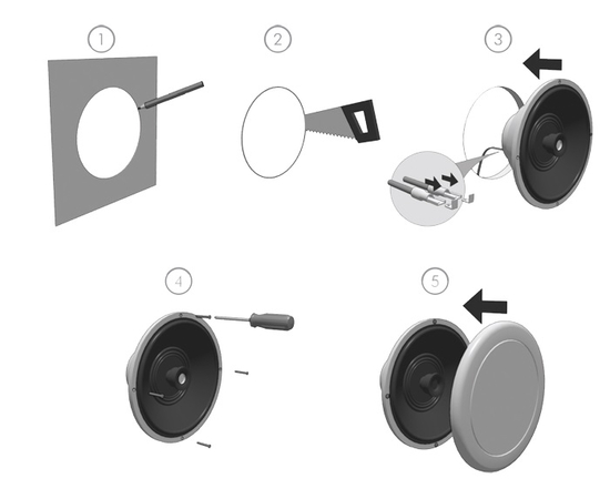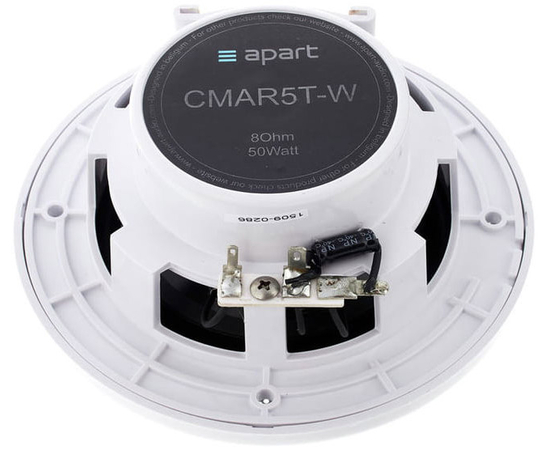 Решетка громкоговорителя изготовлена из стали, стойкой к коррозии. Корзина и диффузор акустической системы изготовлены из пластика. CMAR5T-W снабжен силиконовой прокладкой, которая устанавливаемая между корпусом громкоговорителя и поверхностью потолочной панели. Крепление громкоговорителя простое, с помощью 4-х саморезов.