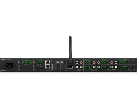 Времена кассетных дек и CD-плееров давно прошли. Теперь ваша музыка живет на вашем смартфоне или планшетном компьютере, поэтому вы можете прекратить искать эти устаревшие кабели и модные адаптеры. Теперь простым взмахом руки вы можете транслировать музыку с любого устройства с Bluetooth, такого как ваш смартфон, планшет, ноутбук и т. д. Усилитель Lab Gruppen CPA1202 также оснащен USB-медиаплеером с интуитивно понятной ЖК-навигацией для воспроизведения аудиофайлов с USB-накопителя. Для подключения балансного источника, такого как микшер или аудиопроцессор, предусмотрен стандартный 3-контактный входной разъем Euroblock. В качестве альтернативы можно подключить кабели RCA для небалансных стереоисточников (суммированных в моно), таких как плееры, телефоны или компьютеры, однако одновременно следует использовать только один источник входного сигнала. Выход на громкоговорители выполнен в виде стандартного 2-контактного разъема Euroblock.