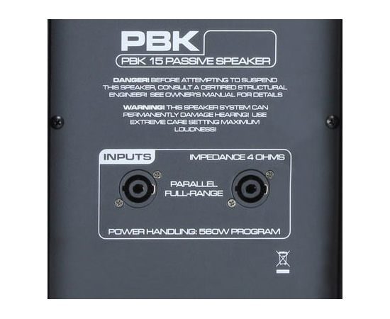 Peavey PBK 15 - недорогая пассивная акустическая система в пластиковом корпусе. Оборудована 15-дюймовым низкочастотным и 1,4-дюймовым высокочастотным динамиком.