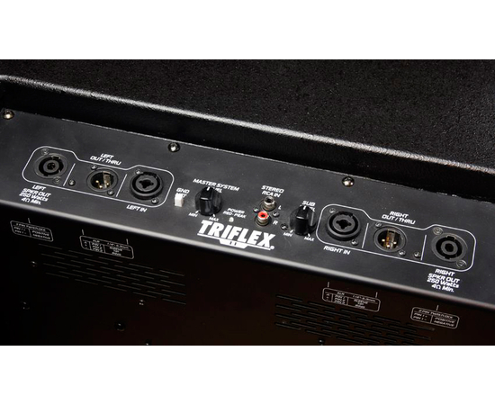 Внутри корпуса сабвуфера TriFlex II установлено шасси с электронными модулями для всей системы, которые включают в себя двухканальный предусилитель, активный кроссовер с регулятором уровня субнизких частот, а также три усилителя мощности. Для удобства транспортировки сабвуфер TriFlex II можно устанавливать на встроенные 3-дюймовые колеса и размещать на нем сателлиты в специальных нишах, предусмотренных на поверхности защитной сетки сабвуфера. В комплект поставки входит также чехол с удобными карманами для микрофонов и кабелей.