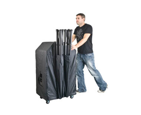 ∙ Надежные колеса на корпусе сабвуфера для транспортировки системы