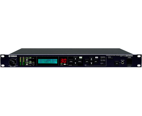 YAMAHA SPX2000 - это универсальный цифровой процессор эффектов, продолжающий традиции легендарных  приборов Yamaha серии SPX, в частности, получившего мировое признание  SPX990. Процессор Yamaha SPX 2000 отличает поддержка формата  24бита/96кГц, наличие цифровых входов/выходов AES/EBU, а также новые  эффекты реверберации, основанные на собственном оригинальном алгоритме  Yamaha  «REV-X».