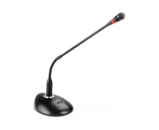 Профессиональный настольный микрофон, с высокочувствительным конденсаторным микрофонный капсюлем. Гибкая "гусиная шея", светящееся кольцо для индикации рабочего состояния и выключатель.