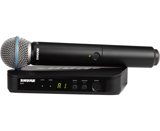 Беспроводная вокальная система BLX24E/B58 с микрофонным капсулем Beta 58A, универсальным кардиоидным динамическим вокальным микрофоном промышленного стандарта, специально разработанным для обеспечения теплого и чистого воспроизведения вокала.