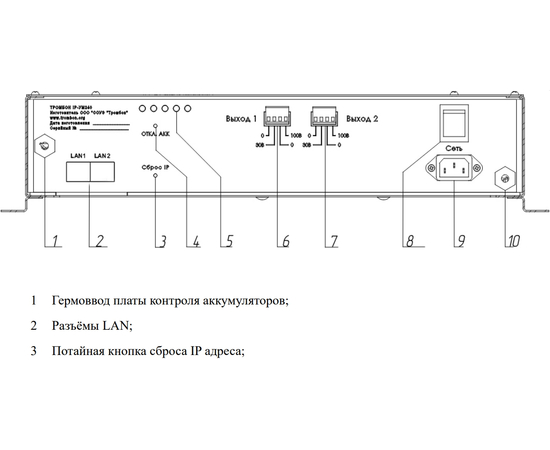 Индикация LED: Сеть, готов, трансляция, неисправность, аккумулятор
