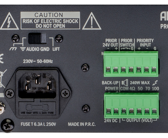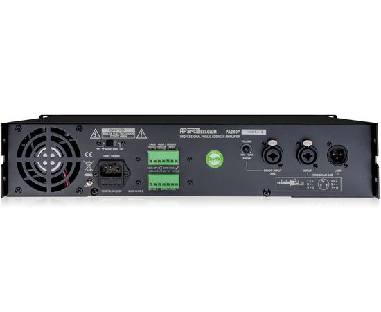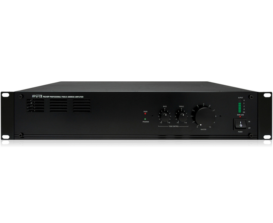APart PA240P - высококлассный трансляционный усилитель, мощностью 240 Вт (50-70-100 V). Прибор также работает и в низкоомным режиме (4 Ом). Усилитель имеет вход для подключения источника звука и приоритетный линейный вход для включения тревожного сигнала в экстренных ситуациях, который активируется путем замыкания контактов.