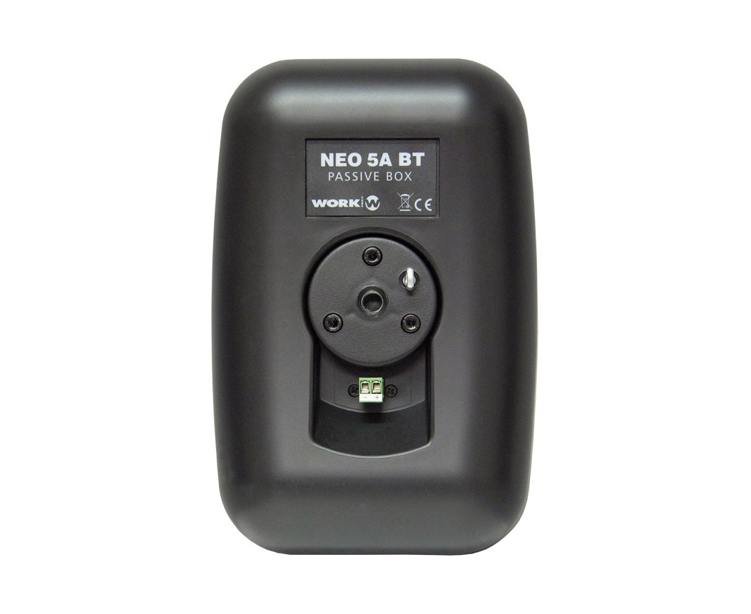 NEO 5A BT — это акустическая система с усилителем, изготовленная из АБС-пластика и алюминиевой решетки белого или черного цвета, состоящая из 5,25-дюймового динамика и 0,5-дюймового твитера. Комплект состоит из активного блока, содержащего 2-канальный усилитель мощностью 25 Вт, который подает сигнал на тот же блок, и пассивного блока системы, который, помимо линейных входов, имеет Bluetooth-соединение с радиусом действия до 30 метров для воспроизведения звука.