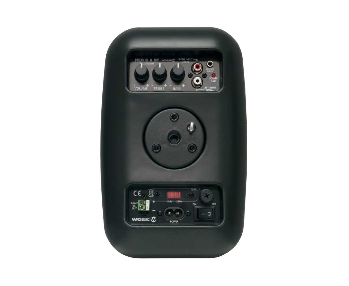 Work NEO 5A BT - комплект из двух настенных колонок с Bluetooth. Активная + пассивная акустическая система. 2 x 25 Вт RMS. Низкочастотный динамик 5,25 дюйма + высокочастотный динамик 0,5 дюйма.