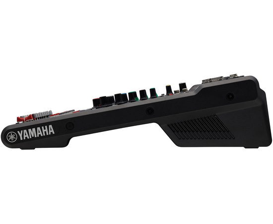 12-канальный микшерный пульт: макс. 6 микрофонных / 12 линейных входов (4 моно + 4 стерео) / 2 групповые шины + 1 стереошина / 2 шины AUX (вкл. FX)