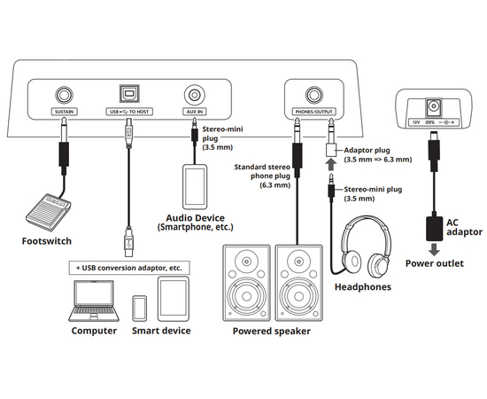 Вы можете заниматься на синтезаторе, не издавая ни звука через встроенные динамики, подключив наушники.