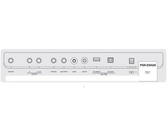 PSR-E473 оснащен левым и правым аудиовыходами, которые позволяют легко подключаться к системам звукоусиления и студийному оборудованию, не занимая разъема для наушников.